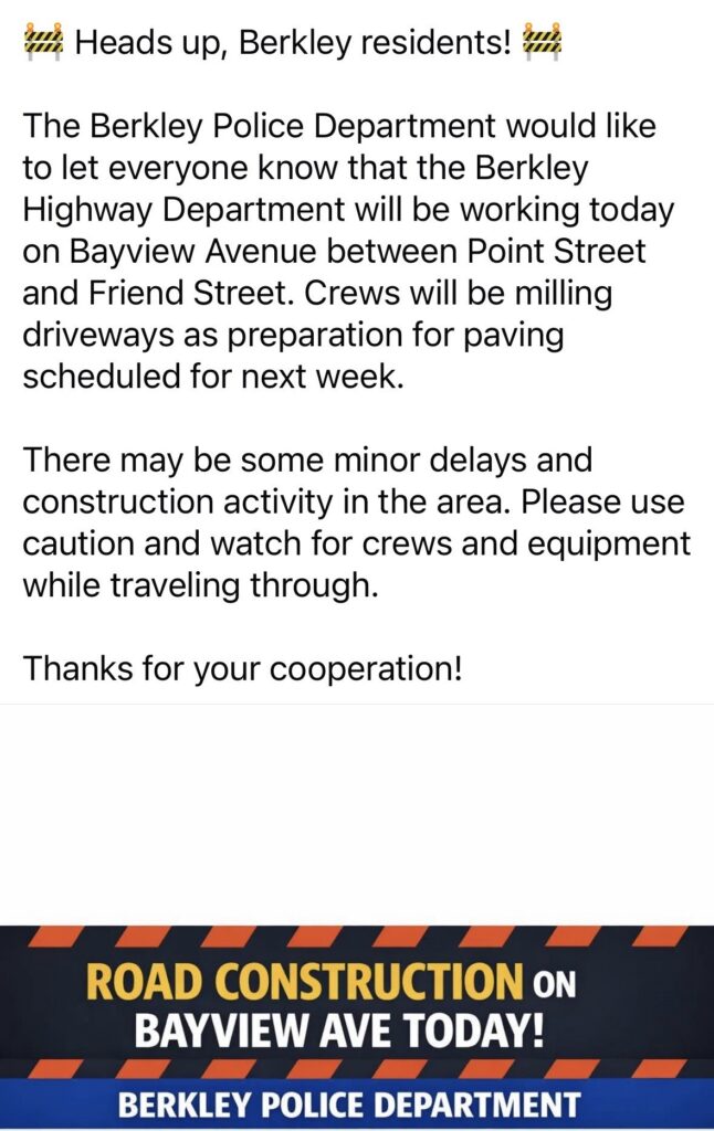 Road Construction on Bayview Ave Today!! April 16, 2026 Town News Post navigation Previous Previous post: The Town Hall will be CLOSED Monday, April 20, 2026 in observance of Patriot’s Day.Next Next post: Annual Town Election Sample Ballot: May 9, 2026